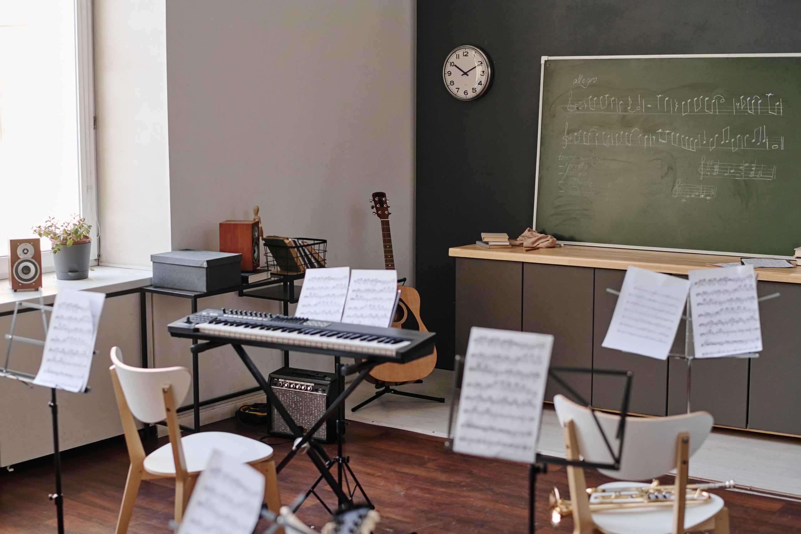 En la Academia Allegro, nuestras aulas han sido diseñadas pensando en la comodidad y el rendimiento de cada estudiante. Espacios amplios, luminosos y perfectamente acondicionados permiten aprender música y danza en un entorno profesional. Cada aula está equipada con los recursos necesarios para clases prácticas y teóricas, garantizando una experiencia formativa completa. El ambiente acogedor y motivador de nuestras instalaciones invita a la concentración, la creatividad y el desarrollo pleno del talento artístico de nuestros alumnos.
